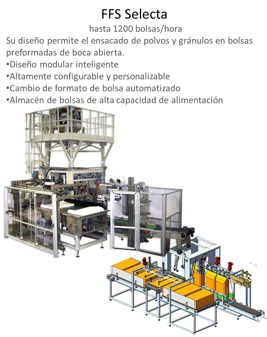 Desde 1980 la Compañía fabrica envasadoras automáticas que embolsan todo tipo de productos con innovadoras soluciones desarrolladas, diseñadas y fabricadas con tecnología propietaria. Creciendo e inovando en el desarrollo de tecnologias complementarias, como los sistemas balanzas y pesaje, o maquinas paletizadoras de baja o alta capacidad de procesamiento o incluso sistemas robotizados.